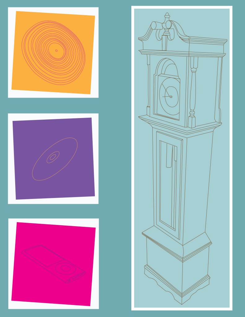 Found Items: Practicing Illustrator pen toolShowing Movement: Practicing Photoshop image layeringMobile App Design: Using Adobe tools to create an app concept